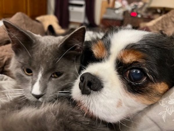Dolly is the best little girl ever. She is clearly THE baby of the family, and we would be very happy if she could live forever. Dolly turned 14 in August 2025 and is still zooming around our house most evenings.